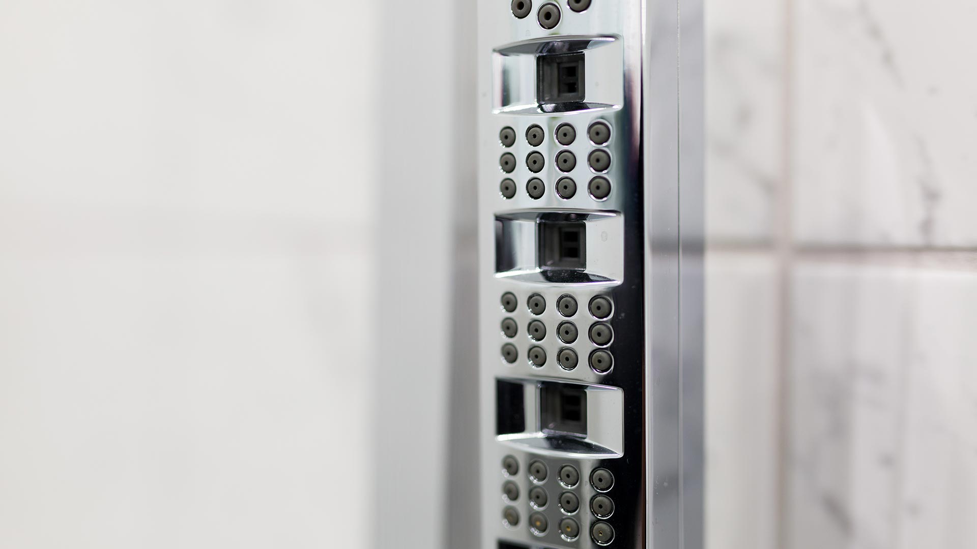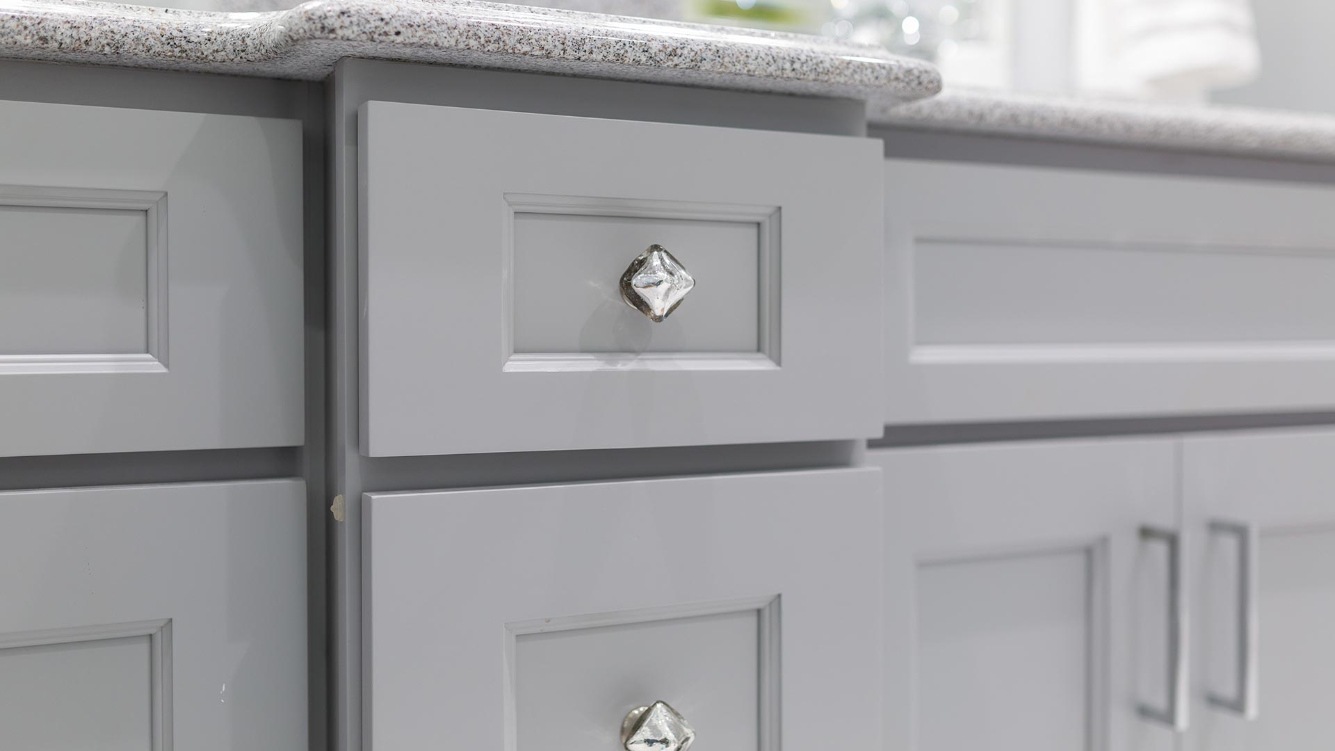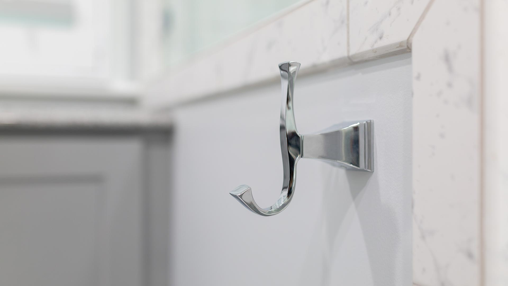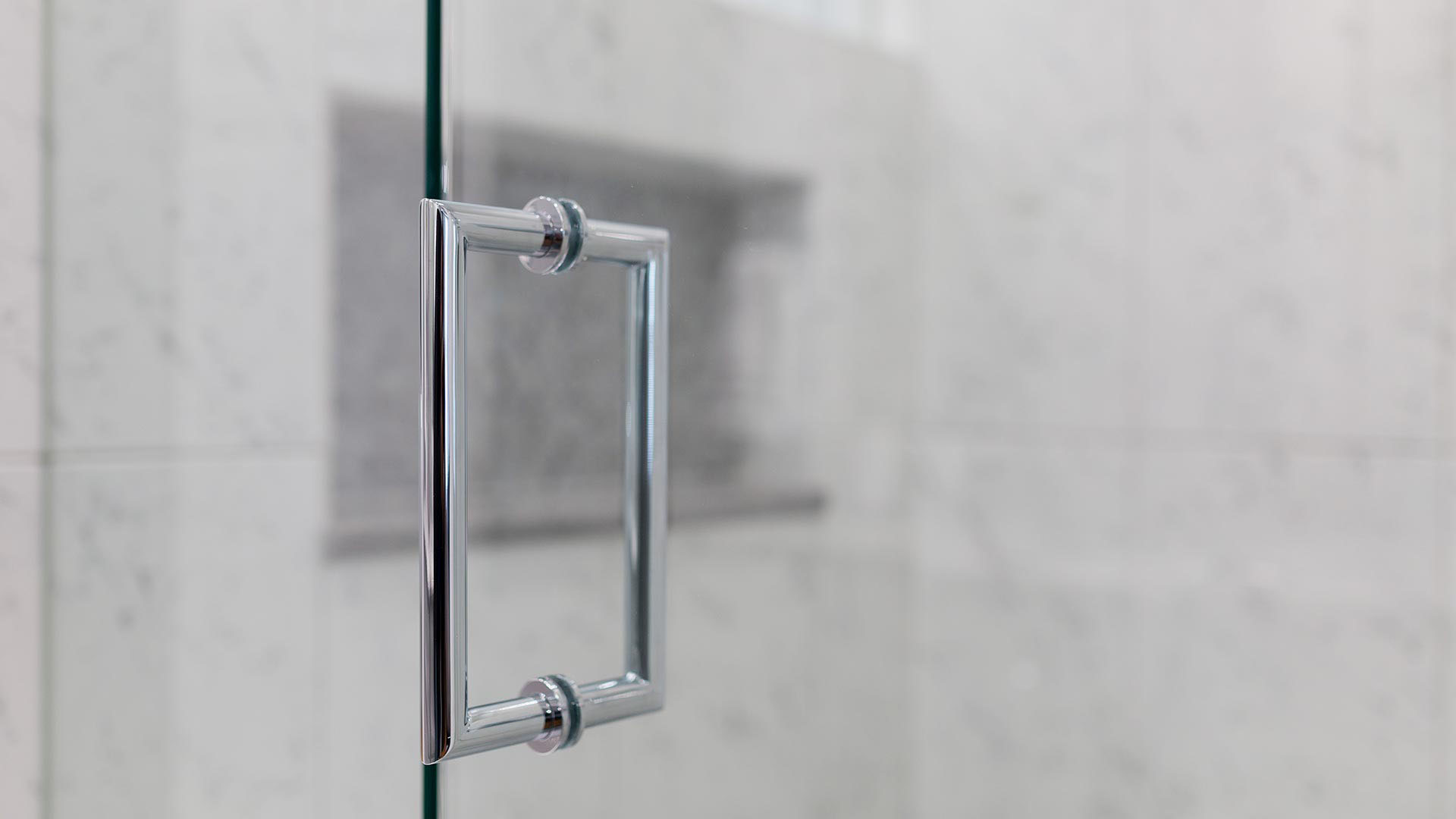Porters Neck Bath Remodel Ogee Edge Granite Counters All Wood Cabinets Circular Ceramic Shower Floor Soft-Close Drawers Heated Towel Rack Vanity Tower Cabinet